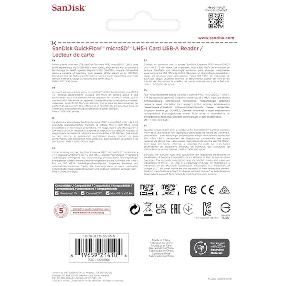 SanDisk QuickFlow microSD UHS-I Card USB-A Reader - SDDR-B731-GN6NN