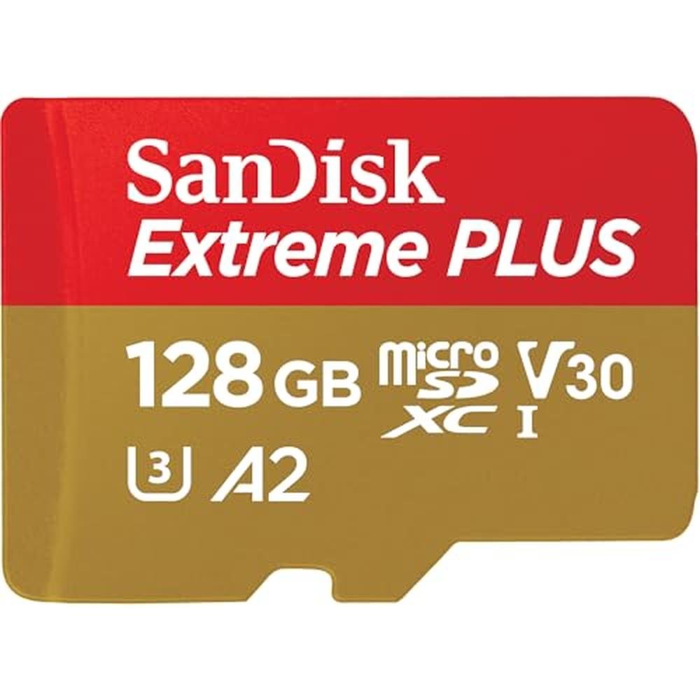 Expand your storage capacity with this SanDisk SDSQXBD-128G-AN6MA Extreme PLUS microSD. The 128 GB capacity provides plenty of space for photos, while the Video Speed Class 30 rating and UHS Speed Class 3 support captures high-quality 4K UHD and Full HD videos. This SanDisk Extreme PLUS microSD has write speeds of up to 90MB / sec. for faster performance.< / p>Storage Capacity: 128 gigabytes Maximum Read Speed: 200 megabytes per second Maximum Write Speed: 90 megabytes per second Memory Card Format: microSDXC Maximum Read Speed: 200 megabytes per second Maximum Write Speed: 90 megabytes per second SD Bus Mode: UHS-I SD Speed Class: Class 10 UHS Speed Class: U3 Video Speed Class: V30 Adapter Included: Yes