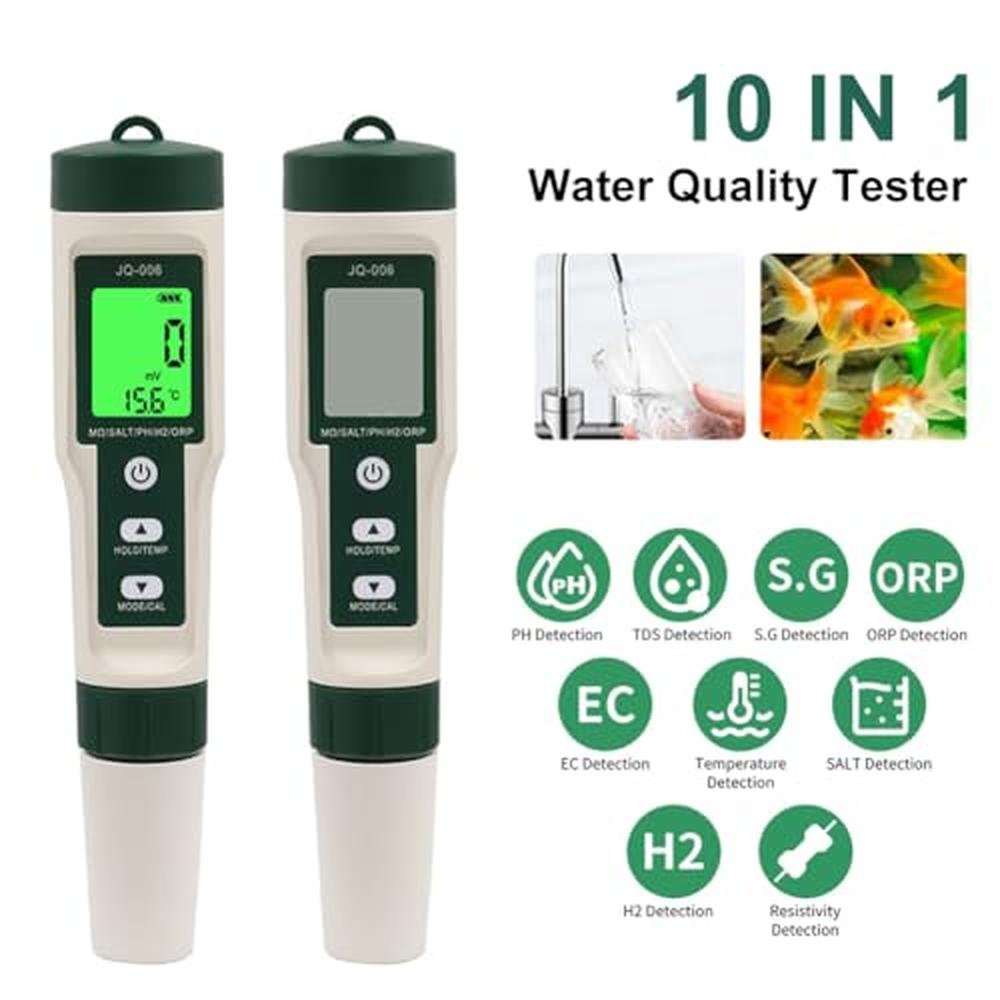 10 in 1 Water Quality Tester PH/TDS/Salt/SG/ORP/EC/Hydrogen/Resistivity/Temp/Nutrient Multifunction Testing Pen for Pool Aquarium