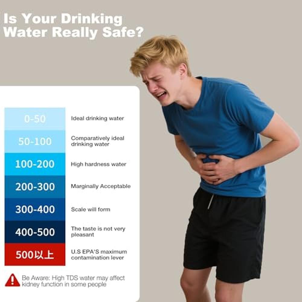 - Lab-Grade Accuracy with Titanium Probes: High-precision chip & corrosion-resistant titanium alloy probes deliver 2% accuracy and 0.02ppm resolution.Get reliable TDS readings in 5 seconds via clear LCD , no more guesswork for your familys water safety.