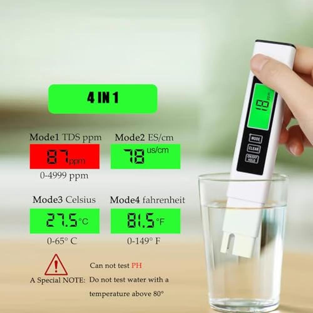 4 in 1 Tds Meter Digital Water Tester, Accurate and Reliable TDS EC & Temp(C,F) Meter, 0-9990ppm Water Quality Tester for Drinking Water RO/DI System, Aquariums etc