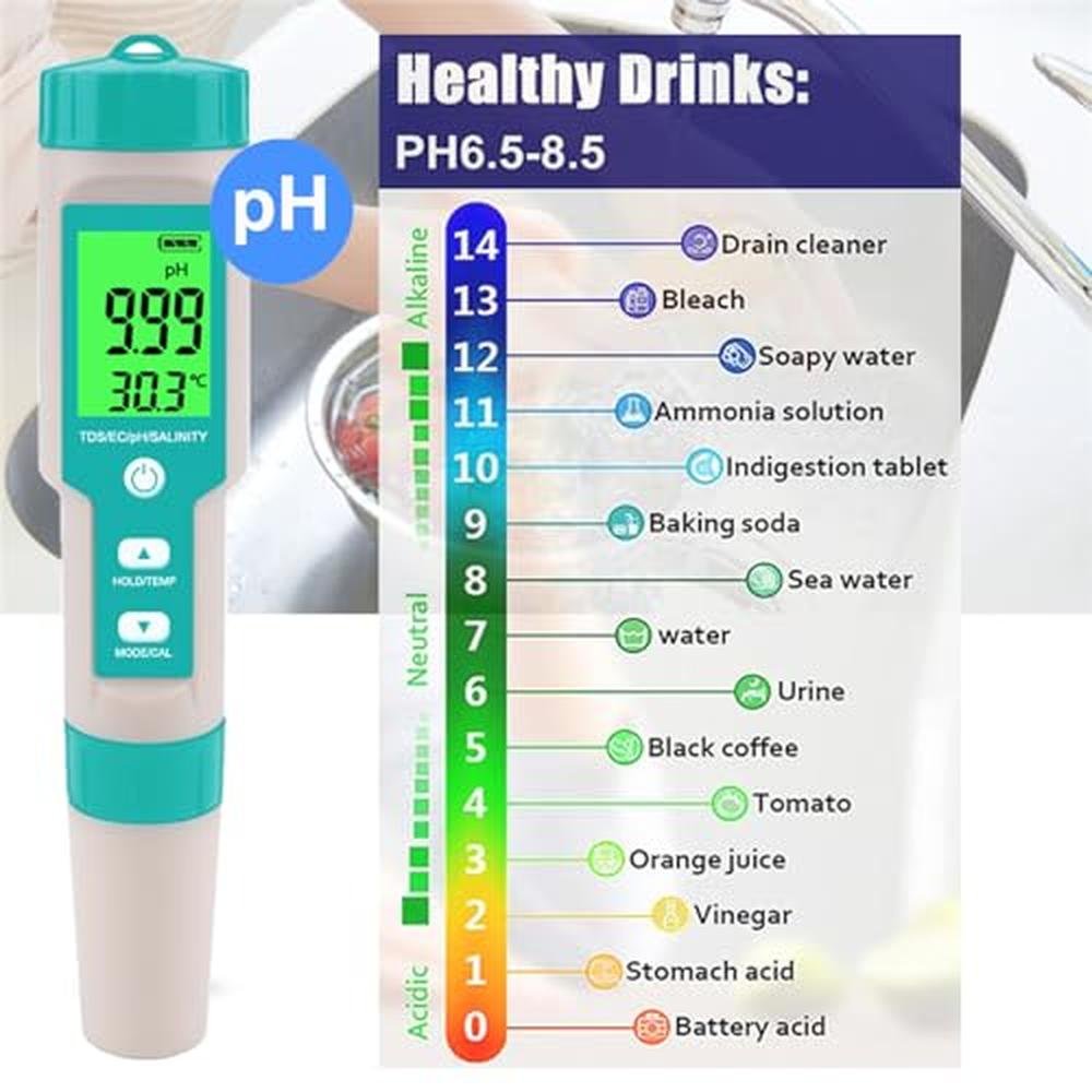 Introducing the WEBEST Pool Salt Tester - the ultimate solution for accurate and comprehensive water testing. With its multifunctional design, this 5-in-1 testing kit allows you to monitor and maintain the salinity, pH, TDS, EC, and temperature of your pool, aquarium, hot tub, or spa. The salinity testing function ensures that your saltwater pool or aquarium maintains the perfect salt level, providing a healthy environment for your aquatic friends. The pH measurement feature allows you to monitor and adjust the acidity or alkalinity of your water, ensuring a safe and enjoyable swimming or soaking experience. Designed with user-friendliness in mind, the WEBEST tester features a clear LCD screen and simple button controls for easy operation. Its compact and portable design makes it convenient to carry and use wherever you need to test your water. This multifunctional water tester is not only suitable for swimming pools and aquariums but also perfect for hot tubs and spas. Keep your water quality in check, prevent any potential issues, and enjoy a refreshing and relaxing experience. With the WEBEST Pool Salt Tester, accurate and reliable water testing is just a few button presses away. Invest in the quality and versatility of this testing kit and ensure the optimal conditions for your aquatic environment. Order yours today and experience the difference it makes in maintaining the purity and balance of your water.