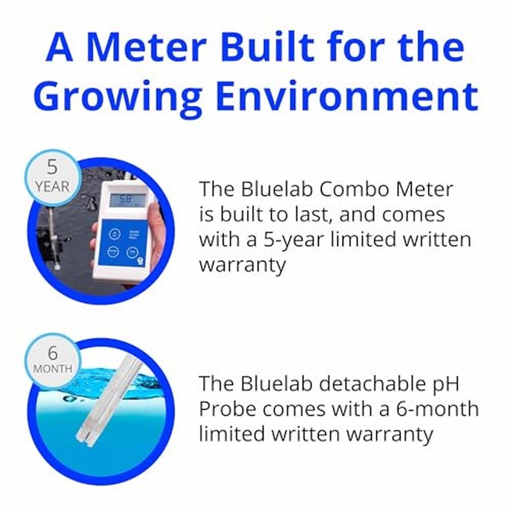 Bluelab Combo Meter for pH, Temperature & Conductivity in Water - Easy Calibration, Digital EC/TDS/PPM Tester for Hydroponics & Indoor Plants (METCOM)