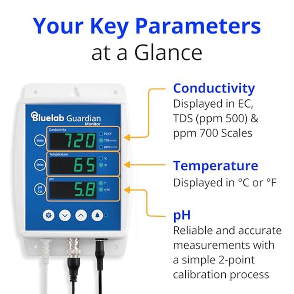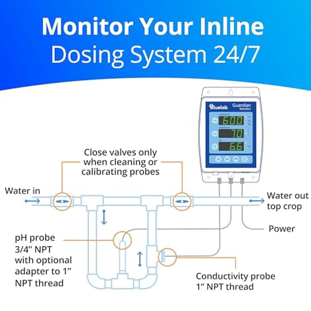 - Inline pH Measurement Capabilities: The Bluelab Guardian Monitor Inline Wi-Fi comes with a double-junction, replaceable Bluelab pH Probe Inline with a BNC connection, providing reliable and accurate pH measurements with a simple 2-point calibration process. It's the perfect solution for monitoring your inline dosing system.