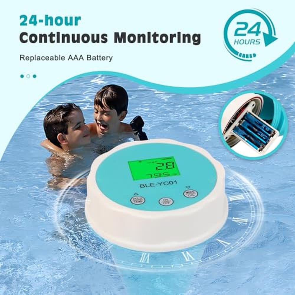 - [24-hour Continuous Test Pool with IP67 Designed]: With IP67 waterproof, YINMIK chlorine monitor and pH test kit can read pH CL Salinity value for 24-hour a day. Just place the pH Salt monitor in your pool, you will check your pool water at any time. In addition, there are replacement AAA battery in YINMIK pH monitor, making the pH meter check pool for longer time.