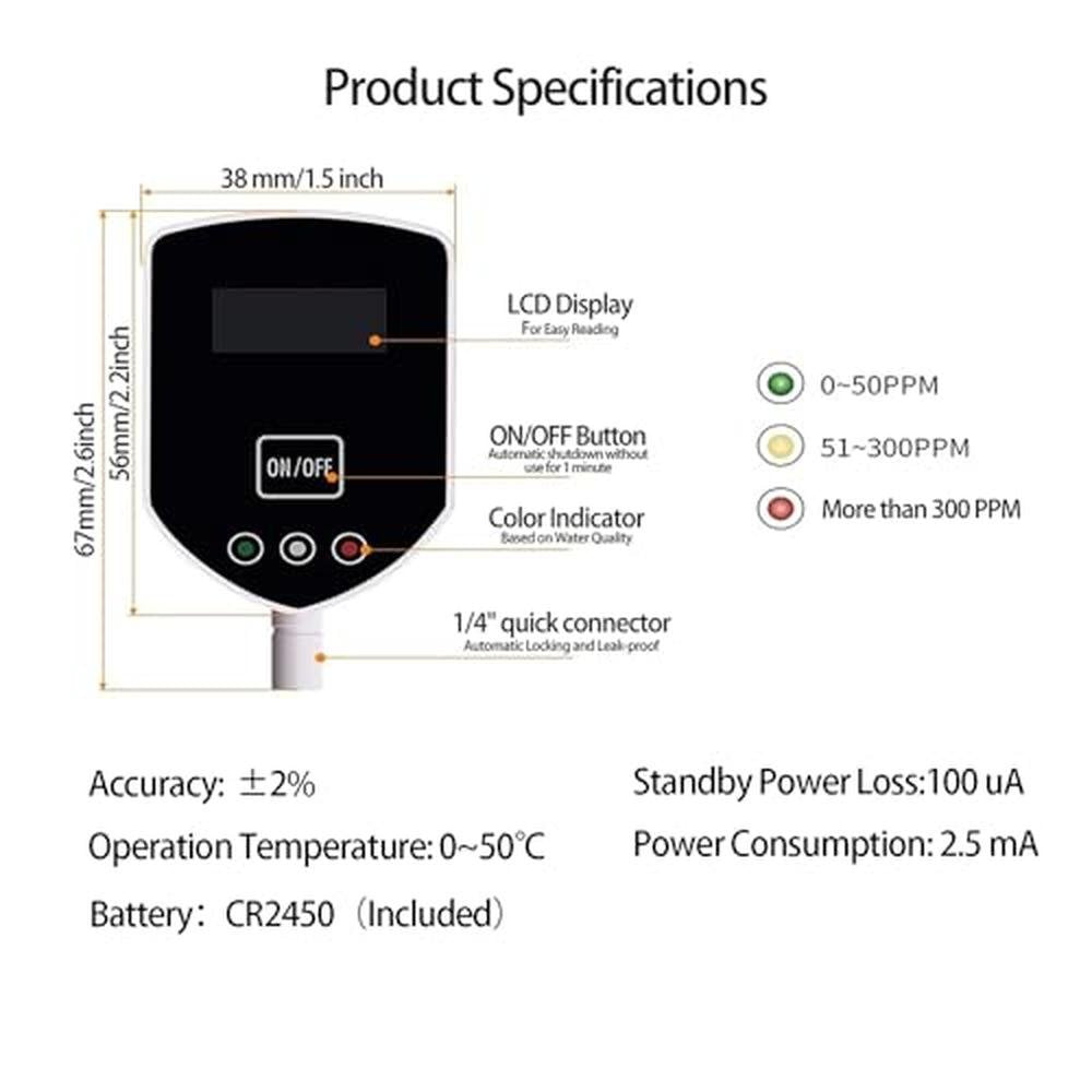 - Large LED Display & Easy To Read: A large, easy-to-read LED digital display on the TDS water testing meter makes it easy to see results. It is equipped with high-precision sensors to monitor TDS (Total Dissolved Solids) indicators in water quality in real time, data is presented clearly, allowing you to keep track of the water quality at home at any time