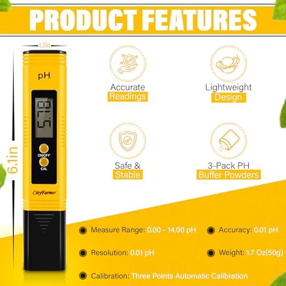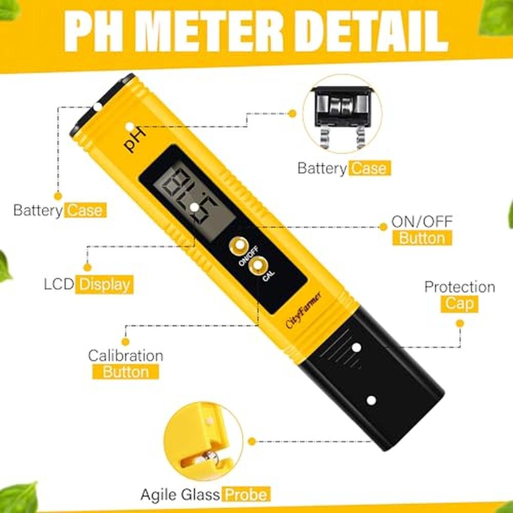 • ★ WORRY-FREE ENVIRONMENT We at CityFarmer believe everyone deserves to live in a worry-free environment. Use this meter to ensure all the water/liquids in your house are in quality conditions with perfect pH balance.