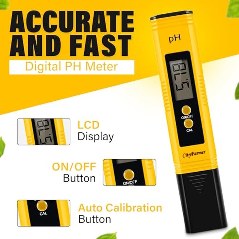 CityFarmer PH Meter, Digital pH Meter, PH Meter for Water Hydroponics, with 3 Pack of Calibration Solution Mixture Included