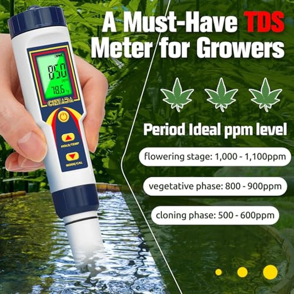 CIZTADA pH Meter for Water 4 in 1 pH EC TDS Temp Meter for Hydroponics PPM and EC Water Tester Digital pH PPM Meter for Nutrients Growing Hydroponics Gardening DWC hydroponics System