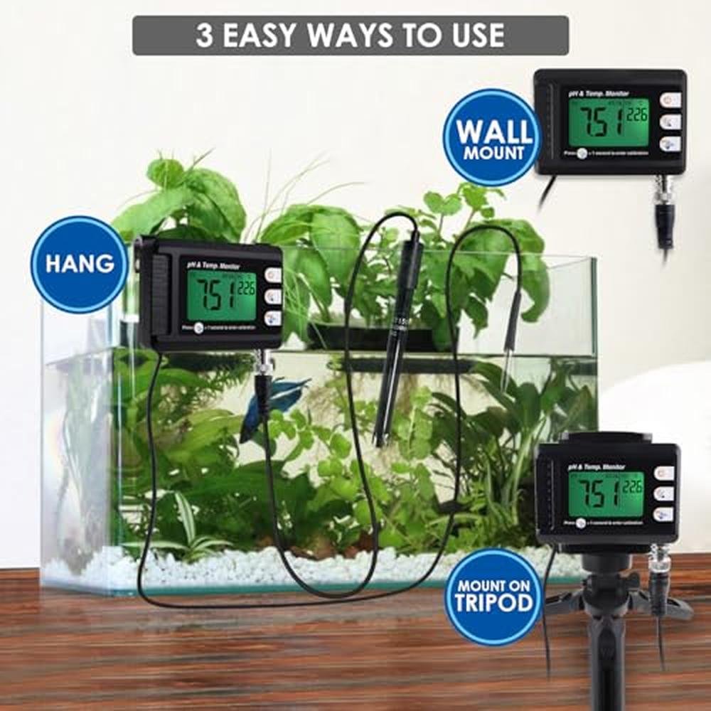 - Accurately monitor pH and temperature of your fish tank or any type of water with this ph monitor device; PH Measurement Range: 0.0 to 14.0 pH, Accuracy: 0.1; Resolution: 0.01