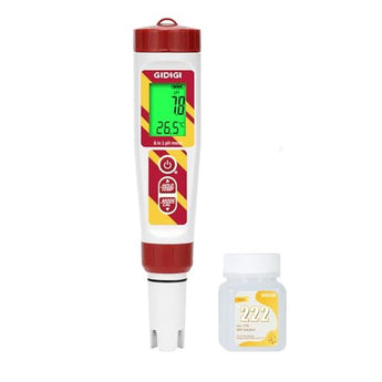 - Professional 6-in-1 Water Analyzer for Multi-Parameter Testing Gain complete water quality mastery with our all-in-one digital meter. It delivers laboratory-grade precision for 6 essential parameters: pH, ORP (999mV), Salinity (0-9900ppm), EC, TDS, and Temperature. Automatic Temperature Compensation (ATC) guarantees stable and accurate readings in varying conditions. This is the ultimate tool for comprehensive monitoring of swimming pools, hydroponic systems, aquariums, and drinking water, making it indispensable for both field use and detailed lab analysis.