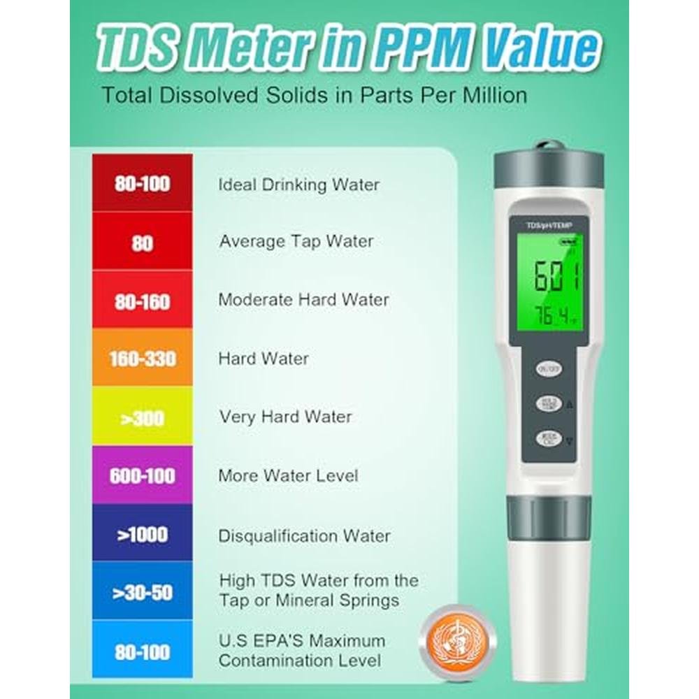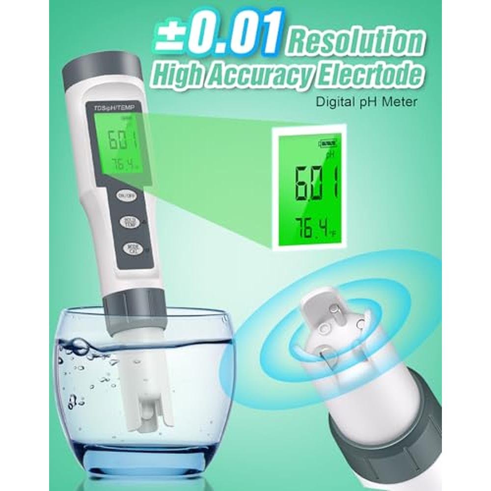 Digital pH Meter with TDS and Temperature Display, LCD Screen, Water Quality Tester