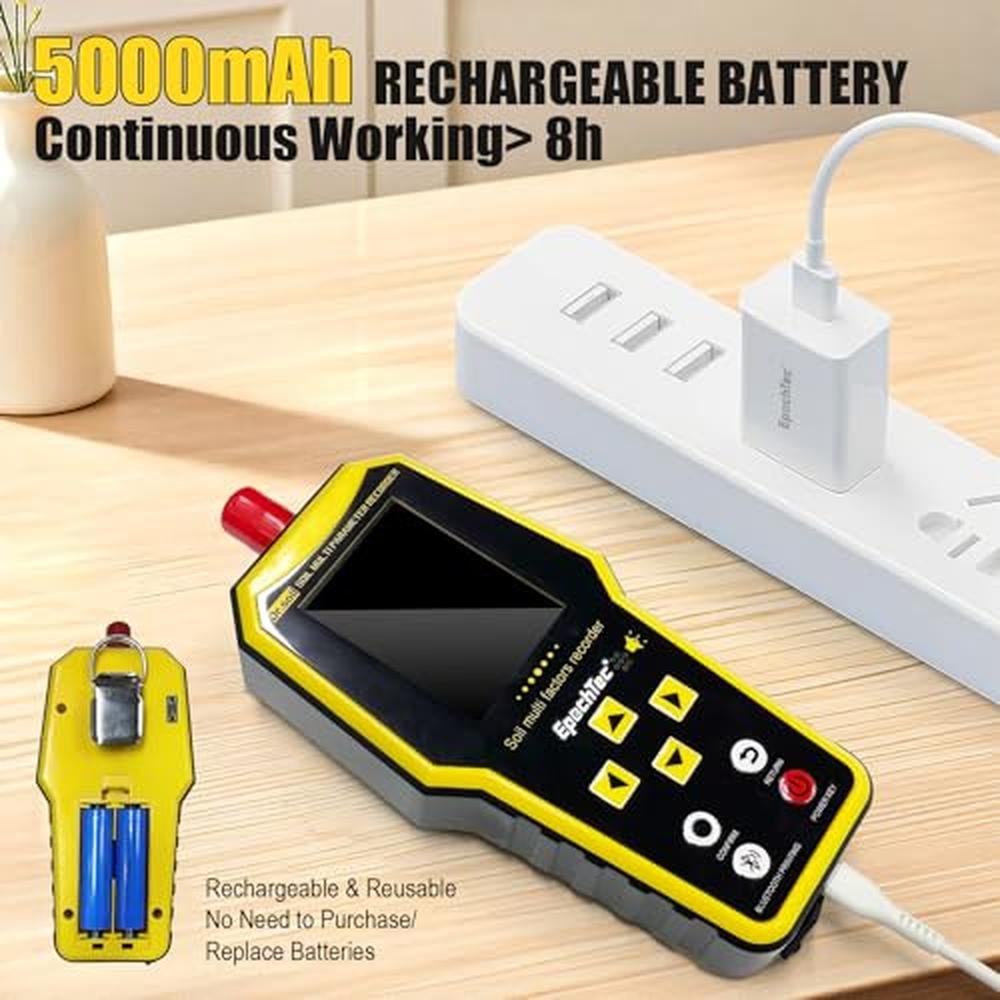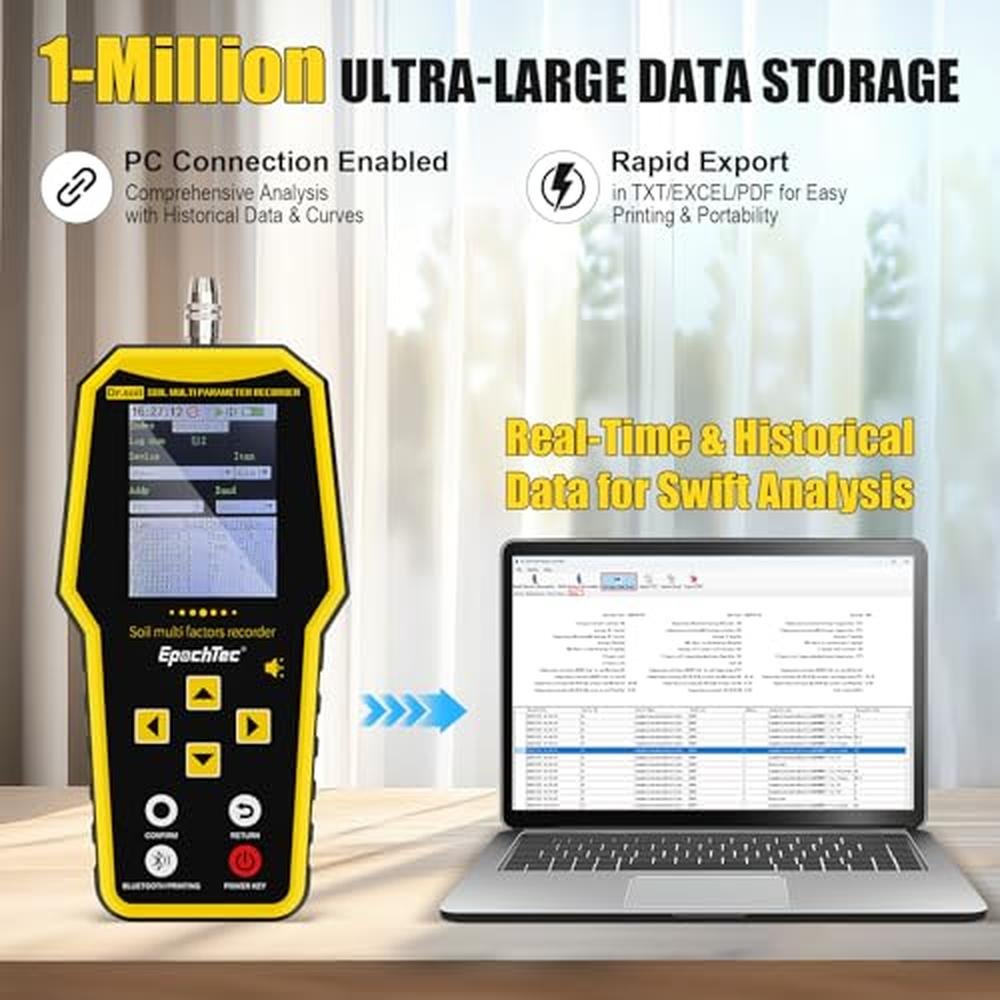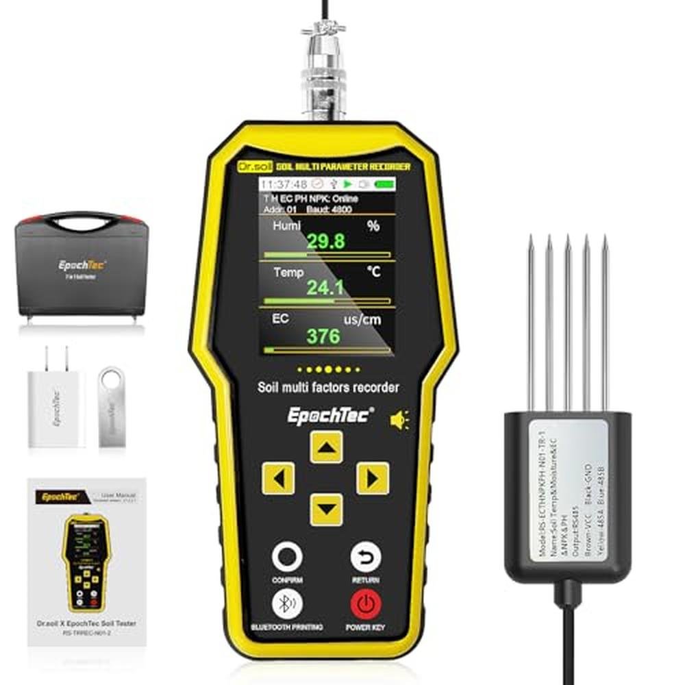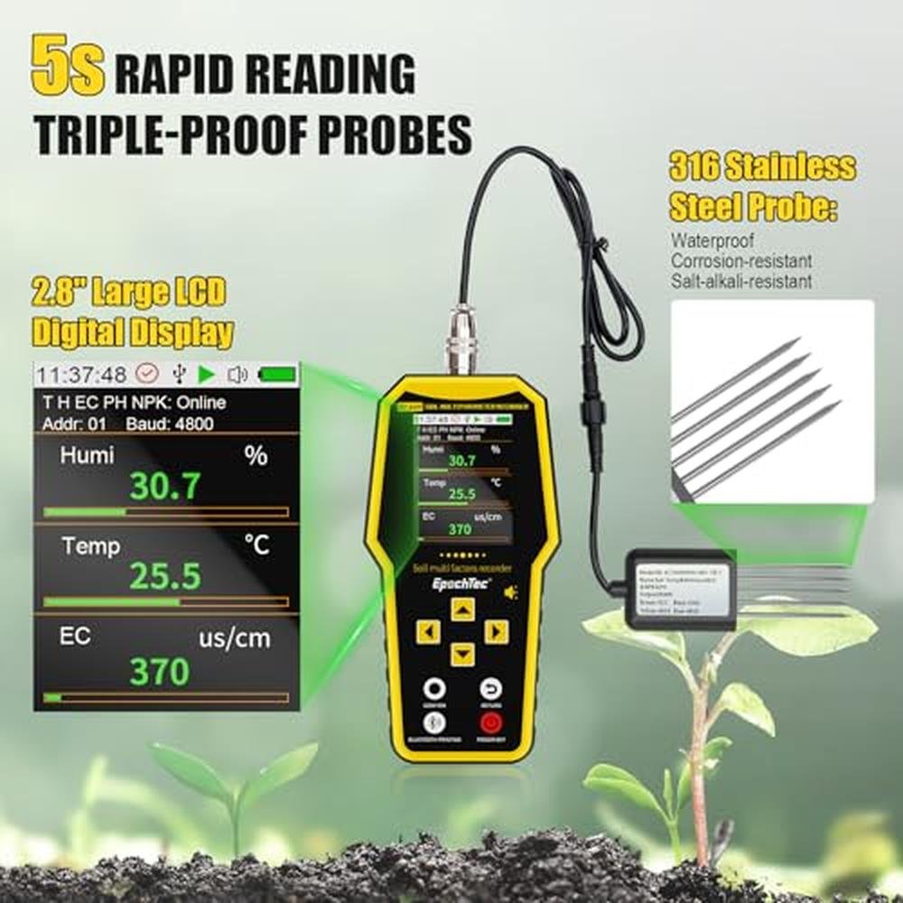 EpochTec 7 in 1 Soil Tester, 1% High Precision Digital NPK Tester/Soil Moisture Meter/PH Tester/Temperature/EC Monitor for Agriculture, Plant Cultivation, Geological Survey with Data Storage & Export