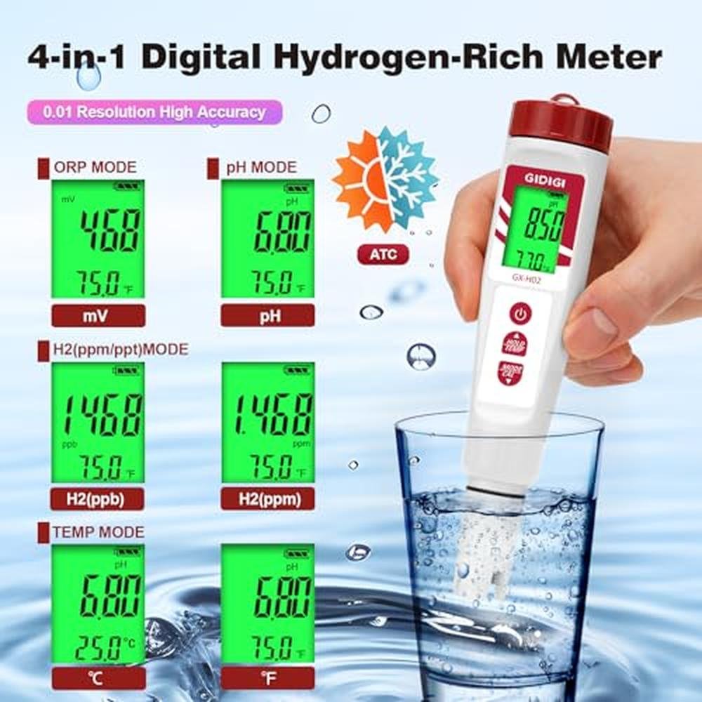 GIDIGI Hydrogen Water Tester, ORP Meter for Testing Drinking Water,Digital Hydrogen pH Meter,Electronic pH PPM ORP Temp Detector for Water,Hydroponics,Swimming Pool,Aquariums