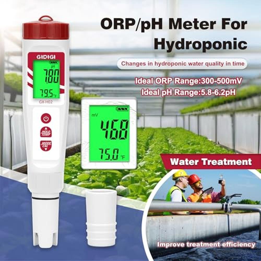 GIDIGI Hydrogen Water Tester, ORP Meter for Drinking Water, Digital pH Meter, Electronic pH PPM ORP Temp Detector for Water, Hydroponics, Swimming Pool, Aquariums, Kombucha