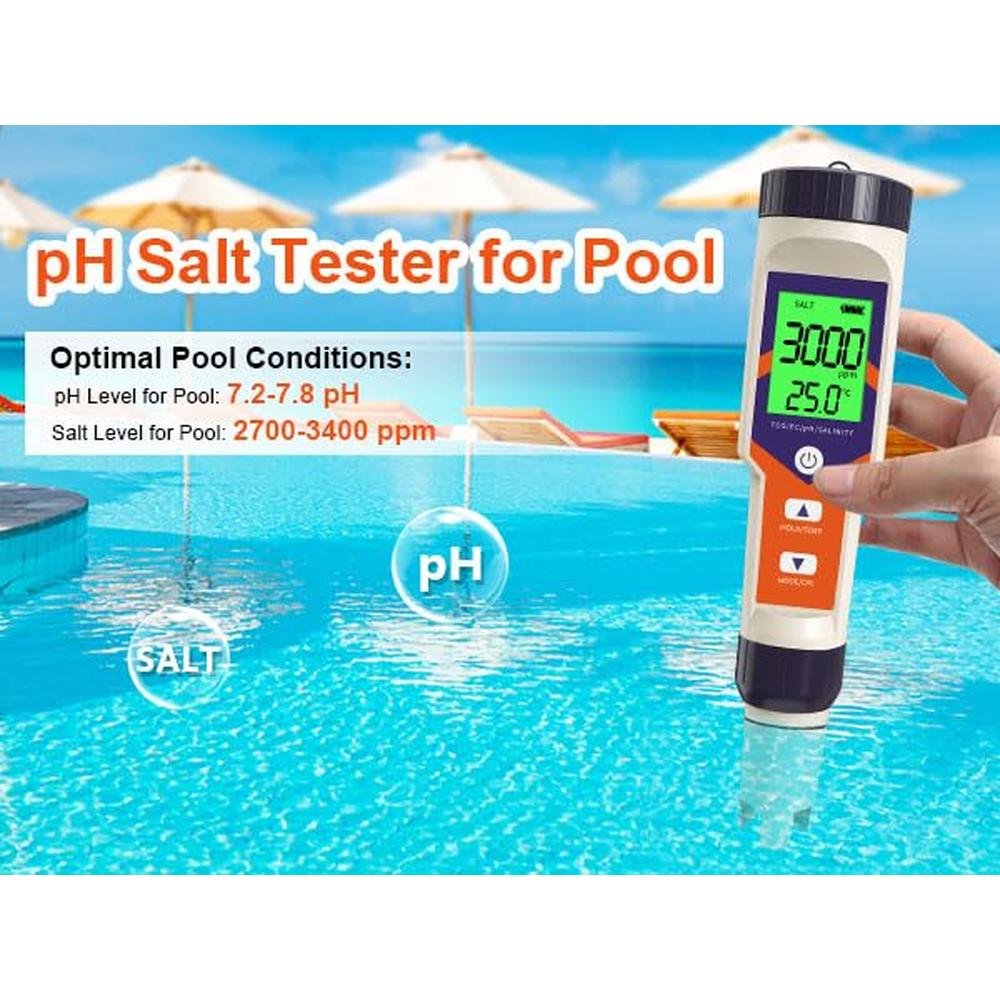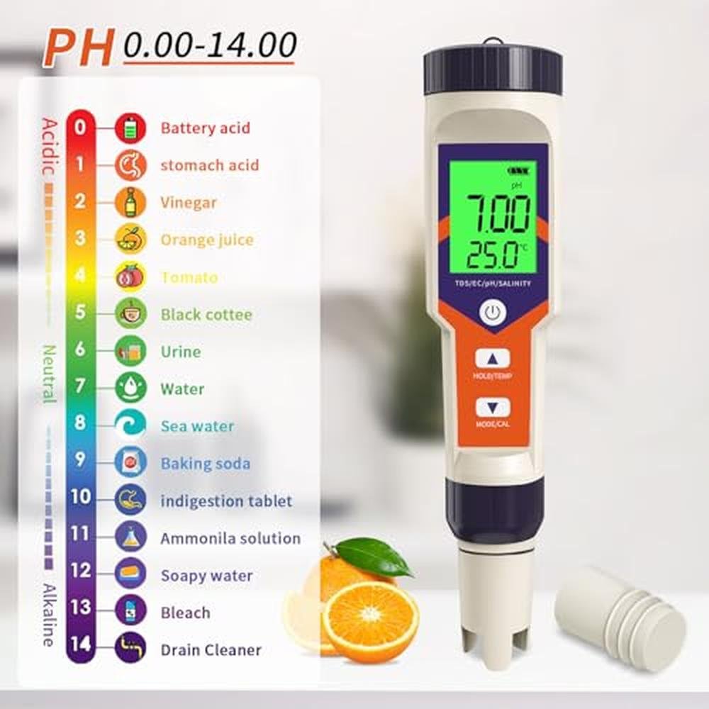 Experience Precision Testing with Our 5-in-1 PH Meter for Water Dive into the world of accurate testing with our 5-in-1 PH Meter for Water, where precision seamlessly blends with user-friendly design. This cutting-edge device is crafted to simplify your testing routine while delivering unparalleled accuracy across a spectrum of parameters. Tailor-Made Salinity Testing: Meet the demands of diverse applications with our three dedicated salinity testing modes. Whether it's standard salinity assessments, seawater testing, or measuring the salt content in culinary creations, our PH Meter ensures reliable and accurate results, every time. Perfect for a myriad of applications, our 5-in-1 pH tester is your go-to solution for testing household drinking water, hydroponics, swimming pools, aquariums, laboratories, and more. The salinity tester boasts multiple uses, detecting salt content in edible salt, saltwater ponds, and koi ponds, while also accurately measuring the salinity of seawater, oceans, and saltwater fish ponds.