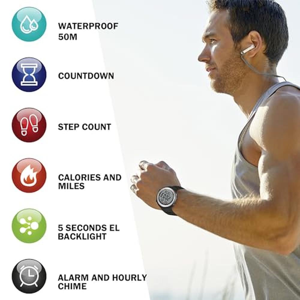 Watch Hearkent | Hearkent Pedometer Watch with Light, No App, Waterproof 50m, Step Counter, Calories, Alarm, Fitness Tracker Digital Watch for Men Women Black | Ultimate Fitness Companion