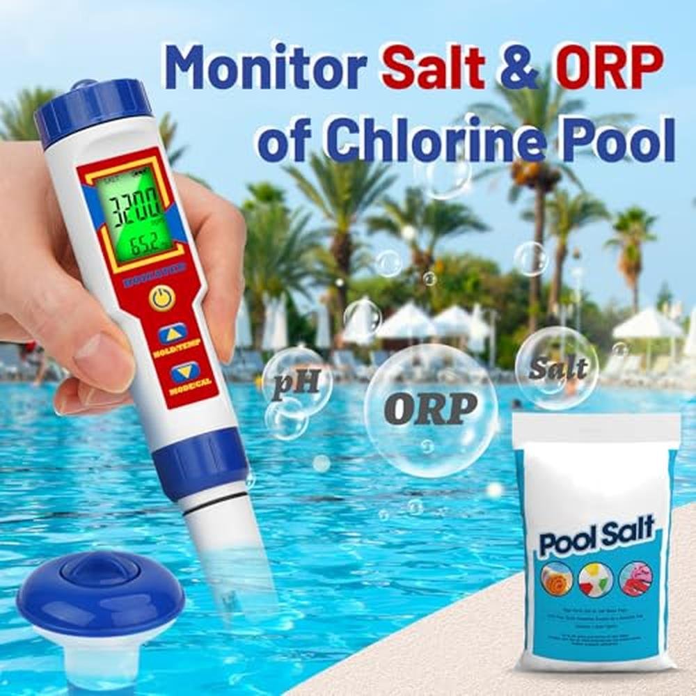HOICATED pH ORP Tester for Chlorine Pool Salt Meter for Saltwater Swimming Pool Digital Salinity Meter Showing PPM for Hot Tub Spa Fish Tank Saltwater Aquarium Hydroponic EC Meter TDS Meter for Drinking Water