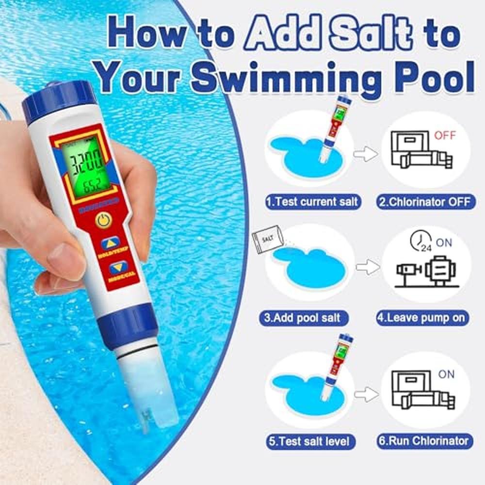 - Regular Salt Check Saltwater Pool Salinity Test Kit: Regular testing and maintenance of your pools salt level is important for optimal performance and to ensure a comfortable swimming environment. Check salt and pH level in your saltwater pool every week to ensure they are balanced. Remember to check your salt level especially after heavy rain and heavy use of your pool.