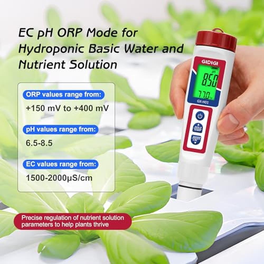 - Hydroponics pH EC ORP Monitor:Monitor pHEC and ORP levels with high accuracy (0.01 resolution) to ensure your water is within the ideal range for drinking, hydroponics, or other applications. Regularly tracking these parameters helps you maintain water quality and adjust treatment plans as needed