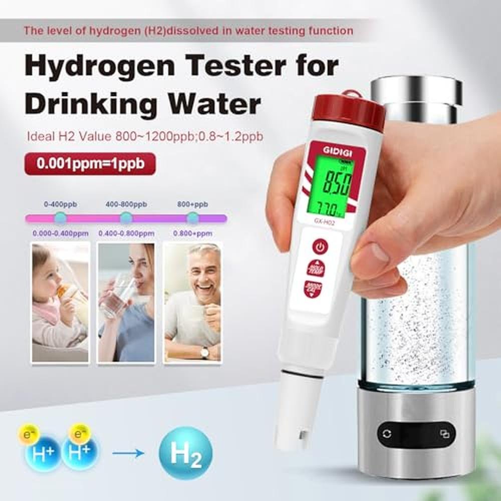 Hydrogen Water Tester, GIDIGI Hydrogen Tester, Digital Hydrogen Tester for water, ORP Tester,pH meter High Accuracy Hydrogen Tester for Drinking Water Swimming Pool Hydroponics Aquariums