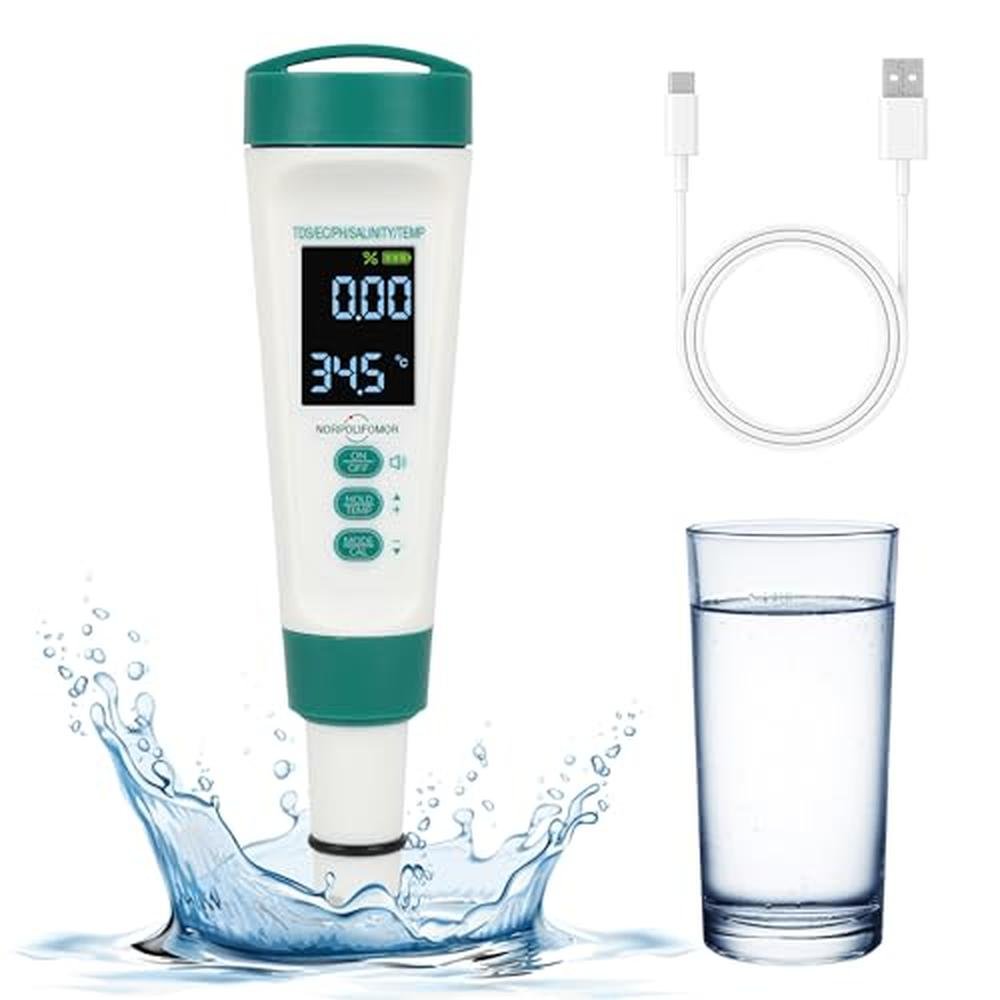 Norpolifomor Pool Salt Tester,pH Meter with Audio, TDS/PPM Tester for Swimming Pool, Hot Tub Spas,Aquariums & Hydroponics,Battery Power