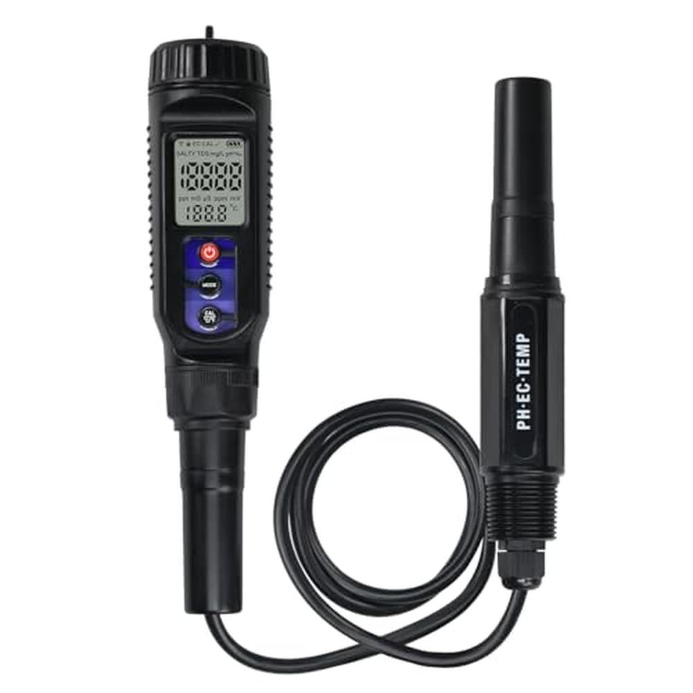 - Professional pH EC Tester Accurate ReadingAdvanced with the corded unique double-lance probe combination of pH EC temperature sensor, this digital ph meter for food is capable of measuring pH levels from 0 to 14 with +/- 0.1pH accuracy, EC from 0 to 19.9 mS/cm with 2%F.S , and temperatures from 0 to 50C with +/- 1C , providing high precise monitoring for a wide range of substances which meet all your requirement perfectly