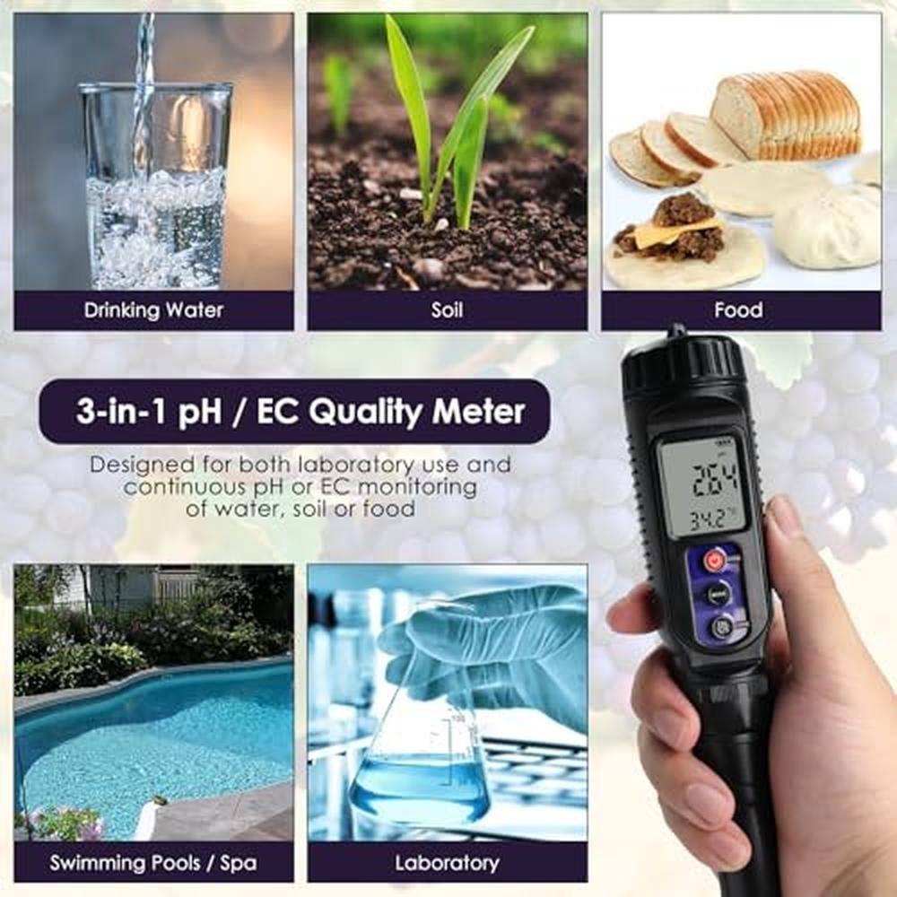 - 3-in-1 Digital pH Meter with EC/Temperature Sensor LANDTEK digital ph tester for food can easily measure the value of pH, EC (electrical conductivity), and temperature. Making it ideal for various applications such as hydroponics, aquariums, Dough, Salami, Sushi, Rice, Fermenting, Sausage, Meat. Soap. Cheese, and also suitable for solid and liquid soft soil sample testing