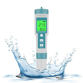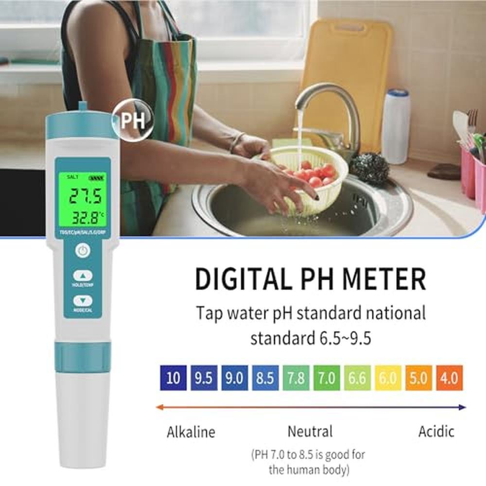 - All-in-One Digital Pool Salt Tester This 8-in-1 digital pool salt tester delivers instant measurements for saltwater pools! Press {MODE/CAL} to switch between PH, TDS, EC, ORP, Salinity, S.G (Specific Gravity), Hydrogen (H), and Temperature. Upgraded high-sensitivity electrodes ensure fast & accurate salt level readings essential for pool maintenance!
