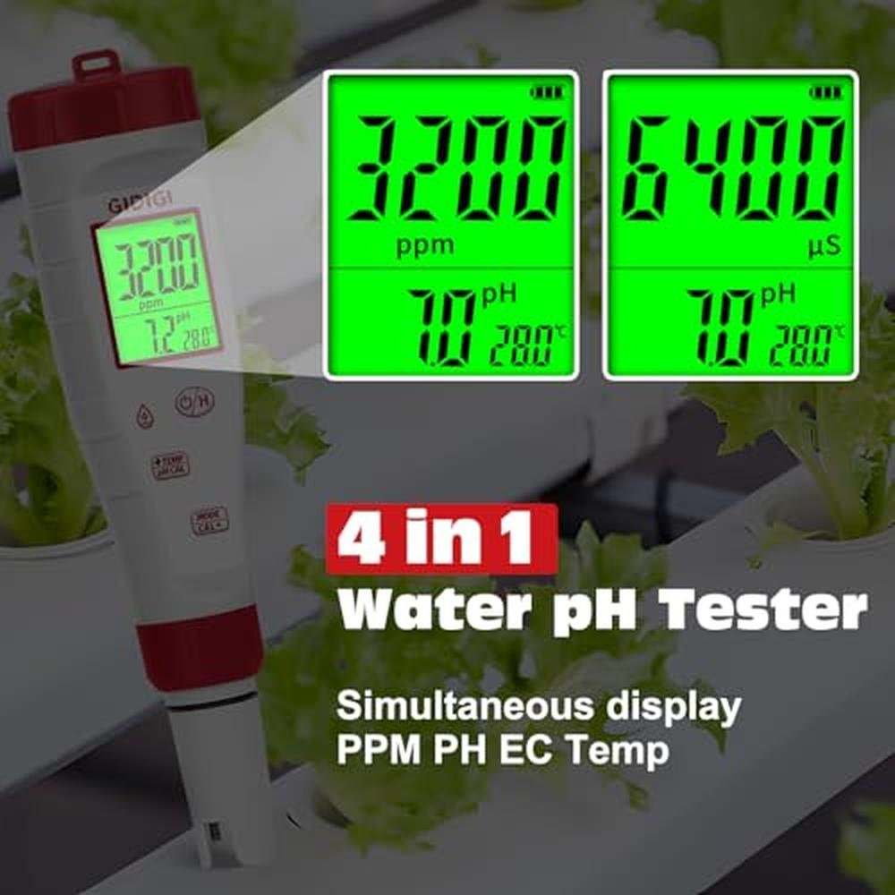 - Multi-functional 4-in-1 pH Tester: Our GIDIGI digital pH testers are versatile and can measure not only pH values but also TDS, EC, and water temperature. With a wide test range for pH (0.1-14.0), EC (0-9990S/cm, 10.01-19.99mS/cm), TDS (0-9990ppm), and temperature (32.0-140.0, 0.0-60.0), it is perfect for various applications such as hydroponics, aquariums, drinking water, swimming pools, tap water, hot tubs, and brewing