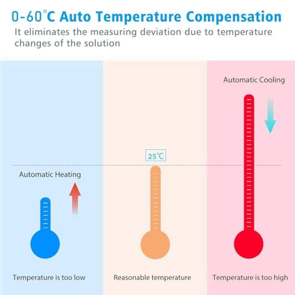 • Automatic Temperature Compensation No longer need to pay attention to the temperature of testing liquid, PILLM ppm meter can accurately determine the pH value of the sample in the temperature range of 0 C-60 C (32 F-140 F), so as to solve the inaccurate problem caused by changing the liquid temperature.