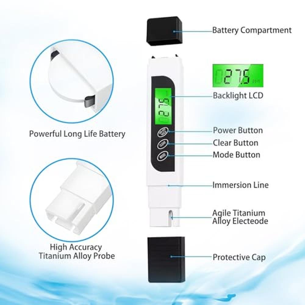 • Multifunctional and upgraded: This professional TDS, EC, and temperature meter 3-in-1 device features a big backlit LCD for easier reading and an auto-lock function for user-friendly operation