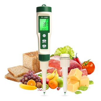 Introducing our high-performance Digital pH Tester, designed to provide precise and accurate measurements for a wide range of applications. With its 0.01 resolution and high accuracy, this pH meter ensures reliable results every time.Equipped with a backlit LCD display, this pH tester offers clear and easy-to-read readings, even in low light conditions. The Automatic Temperature Compensation (ATC) feature guarantees accurate measurements regardless of temperature variations, making it ideal for various environments.This versatile pH meter is a must-have tool for anyone involved in food preparation, canning, brewing, cheese-making, and even soil and water testing. Its food-grade construction ensures safety and durability when testing meat, bread, canning products, cheese, solid sampling, soft soil, and water.Whether you're a professional chef, a home brewer, or a gardening enthusiast, this digital pH meter for food is an essential companion. It provides accurate readings to help you maintain the perfect pH levels for optimal results.Invest in this reliable and user-friendly digital pH tester to take control of your food preparation and testing processes. Order yours today and experience the convenience of precise pH measurements with ease.