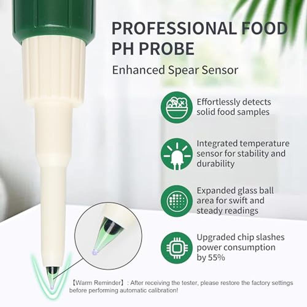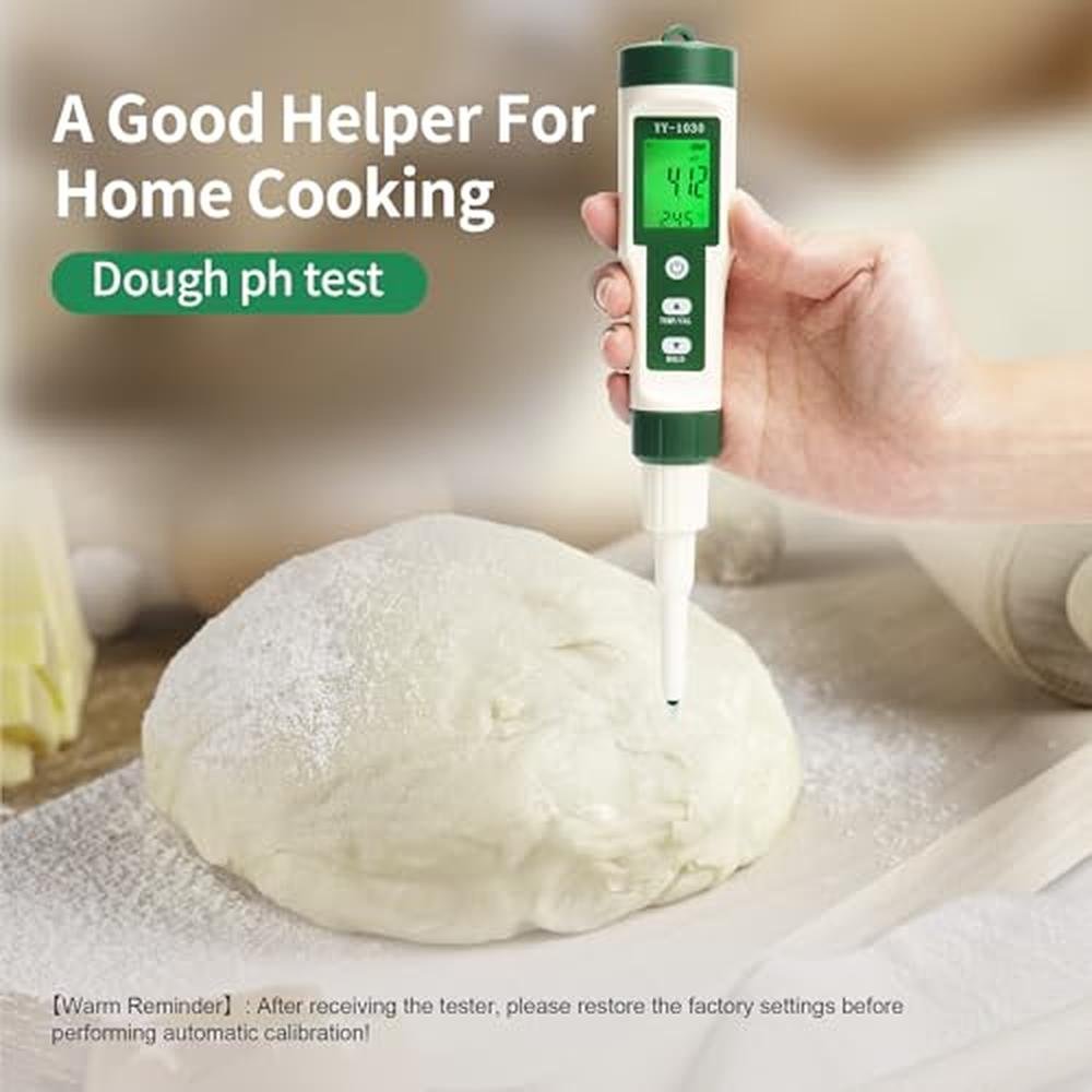 - **Fermented Food pH Tester**:Featuring a unique spear-type sensor and glass bead design, simply insert the probe into the sample and wait for the value to stabilize for accurate measurement. This pH tester for food is suitable for pH testing of fermented foods such as chili sauce, cheese, sushi rice, jam, and sourdough bread, assisting in determining the degree of food fermentation and providing an appropriate fermentation environment.