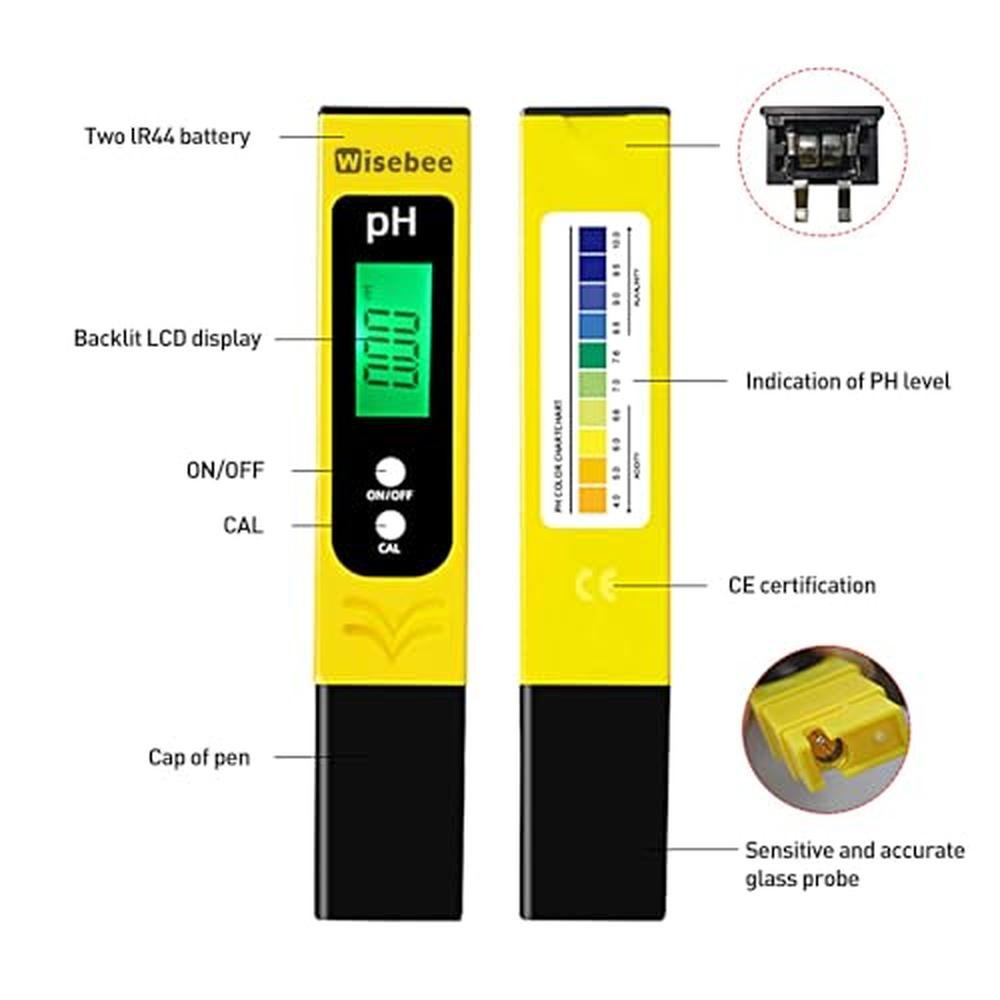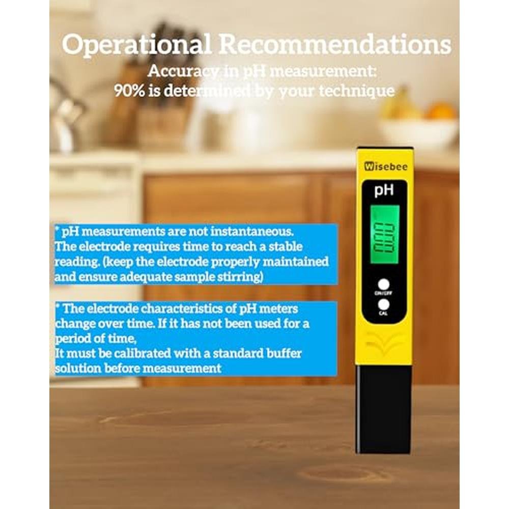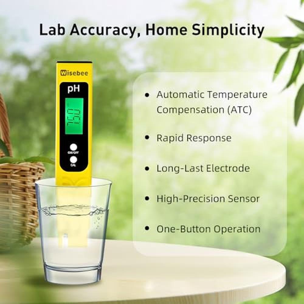 Wisebee Digital pH Meter, Water Quality Tester Pen with High Accuracy | Backlit LCD Display | Pocket-Size | 0-14 PH Measurement Range| UL Certified | Battery Powered for Drinking, Aquarium, Pool, Lab