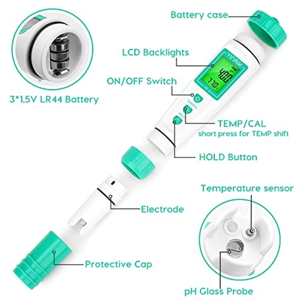 • [With One Extra Probe] An additional probe of YINMIK Digital pH Meter is included in the package in case the original one is accidentally damaged. With the replacement probe , you will have a brand new pH tester again. Greatly extend the life of pH tester.