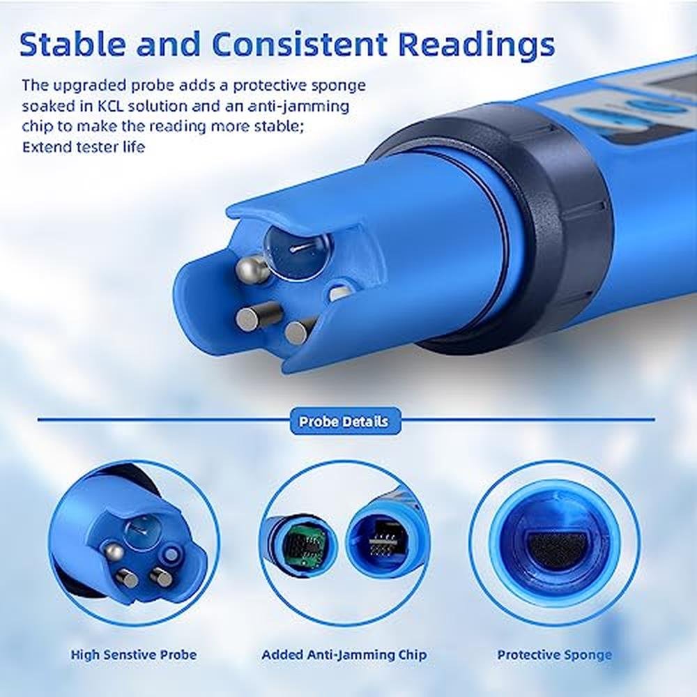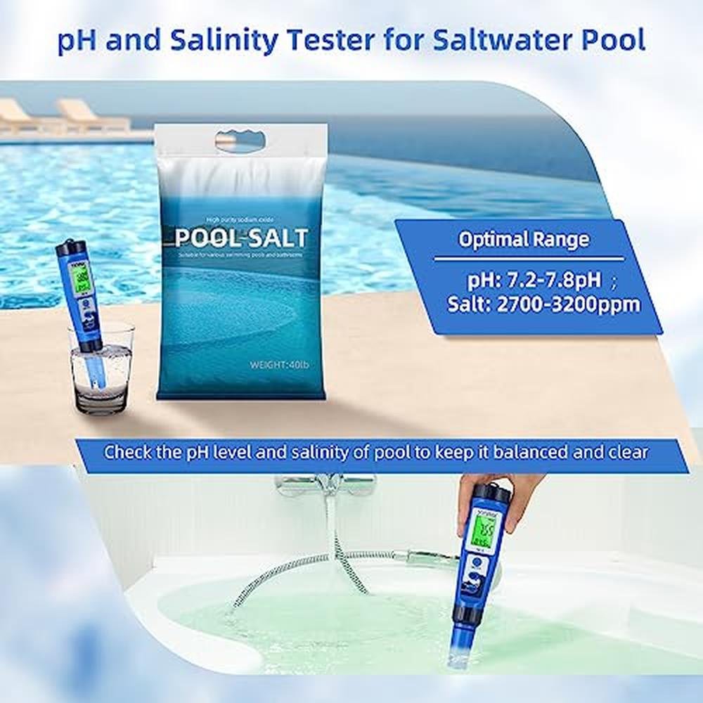 • Multi-parameter pH EC TDS Salt TEMP Tester: YINMIK YK-5 Digital pH tester is a great tool for water quality testing , pH Meter widely used in pool, aquarium, chlorine pool,spa, hot tub or hydroponics.Salt Meter:Good Assistant for saltwater pool, Koi Fish, Seawater, Aquariums & Marine Monitoring. TDS Tester:Helper for checking RO/DI system ,drinking water