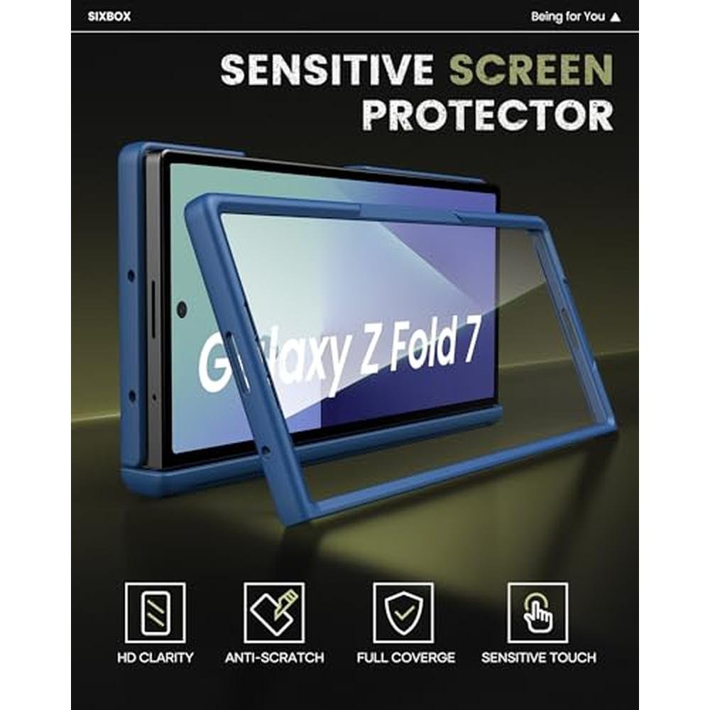 Compatible with Samsung Galaxy Z Fold 7 5G(2025 Release) Color: Blue Compatible Modle: Samsung Galaxy Z Fold 7 5G Package Included: 1 x Galaxy Fold 7 case Unique Advantage: (1) This Samsung Z Fold 7 cases with a high-definition screen protector, it will fit your phone screen perfectly. Precise cutting ensures port access and allows full access to all buttons; The wireless charging-friendly design allows for easy charging anytime, making it convenient for daily use. (2)SIXBOX's new Samsung Fold 7 case features an upgraded thinner hinge and 1.5mm raised lip camera lens protection, ensuring your lens stays free from scratches and providing professional protection and a smooth experience for your Galaxy Z Fold 7 (3)NOTICE: 1 Please be sure to remove the blue protective film both inside and outside the front frame before installing for best result 2 This Z Fold 7 thin case is not compatible with MagSafe