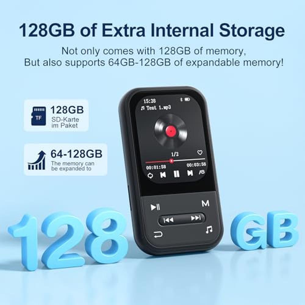 MP3 Player | 128GB Clip MP3 Player with Bluetooth 5.3 | Portable Music Player with FM Radio and Voice Recorder