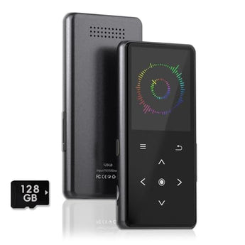 Experience the epitome of portable music players, where style, functionality, and seamless connectivity converge. Our 128GB MP3 player with Bluetooth technology enables you to indulge in your favorite music and audiobooks anywhere, anytime. With a built-in speaker, you can share your music with friends and family, or plug in the included earphones for a more immersive experience. This wireless music player also features an FM radio, recorder, and e-book functionality, making it the perfect companion for music lovers on-the-go. Whether you're looking for a high-quality music player or a classic music player, our device is designed to elevate your music experience. Immerse yourself in the world of music with our premium-grade portable music player, crafted to provide superior sound quality and effortless connectivity.