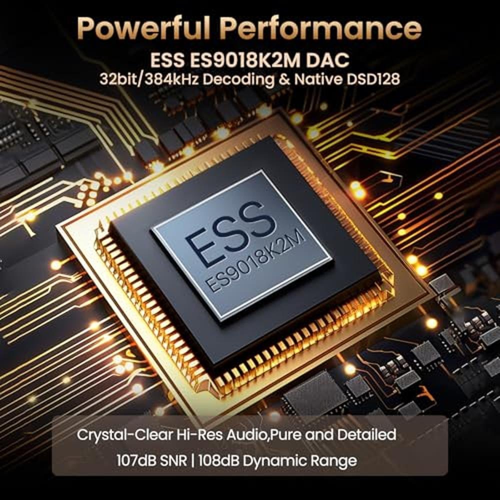 - Supports lossless audio formats like FLAC and DSD, with a superior SNR of 103dB@1KHz