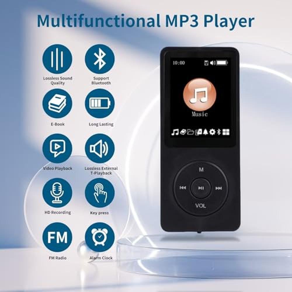 Indulge in the world of premium audio with our MP3 player, featuring Bluetooth 5.2 technology and delivering exceptional HiFi sound mp3 quality. Designed for the discerning music enthusiast, this device is perfect for sporty runs, daily commutes, or relaxation. With its built-in speaker, FM radio, voice recorder, and e-book features, you'll experience a new level of entertainment. Enjoy lossless sound mp3 playback and discover a world of crystal-clear audio. The sleek, mini design makes it easy to take with you wherever you go, and with earphones included, you're ready to immerse yourself in your favorite tunes.