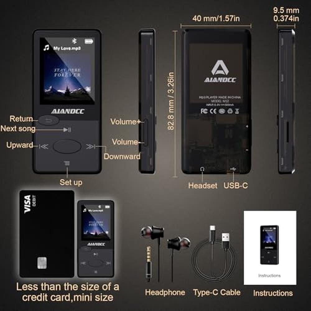 Immerse yourself in the world of premium sound with our Bluetooth 5.3 HiFi sound music player, expertly designed for both kids and adults. This sleek, compact MP3 player boasts a built-in FM radio, allowing you to tune into your favorite stations on the go. With an impressive 32GB of internal storage, you can store hundreds of songs, and the option to insert a TF card provides even more storage capacity. The package includes earphones, so you can start listening to your favorite tunes right away. Whether you're looking for a high-quality MP3 player for everyday use or a superior music experience, our device is the perfect choice. Elevate your music experience with our top-tier MP3 player, featuring advanced Bluetooth technology and superior sound quality. Experience the ultimate in portable music playback with our refined, sophisticated, and premium-grade MP3 player.