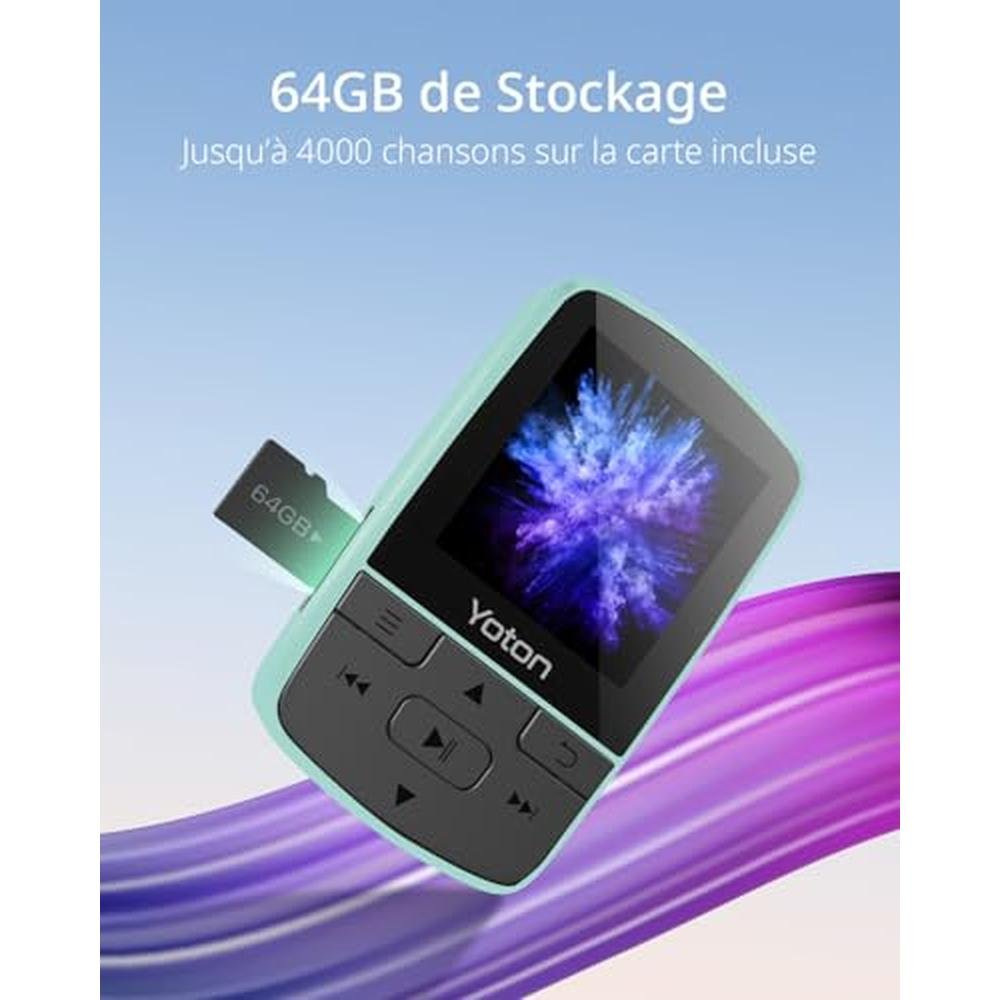 Immerse yourself in the world of premium portable music entertainment with the YOTON MP3 Player, featuring cutting-edge Bluetooth 5.2 technology for effortless wireless connectivity. This sleek, compact device boasts a mini size and sports clip design, making it the perfect companion for on-the-go listening, whether you're working out or taking a leisurely stroll. With an impressive 64GB of storage, you can store hundreds of your favorite songs, podcasts, and audiobooks, and enjoy high-fidelity sound with the included headphones. The independent volume control allows for a personalized listening experience, while the built-in FM radio feature keeps you tuned to your favorite stations. As a top-tier MP3 player, the YOTON YM03 offers a multitude of functions, including music playback, FM radio, recording, stopwatch, pedometer, and photo viewing.
