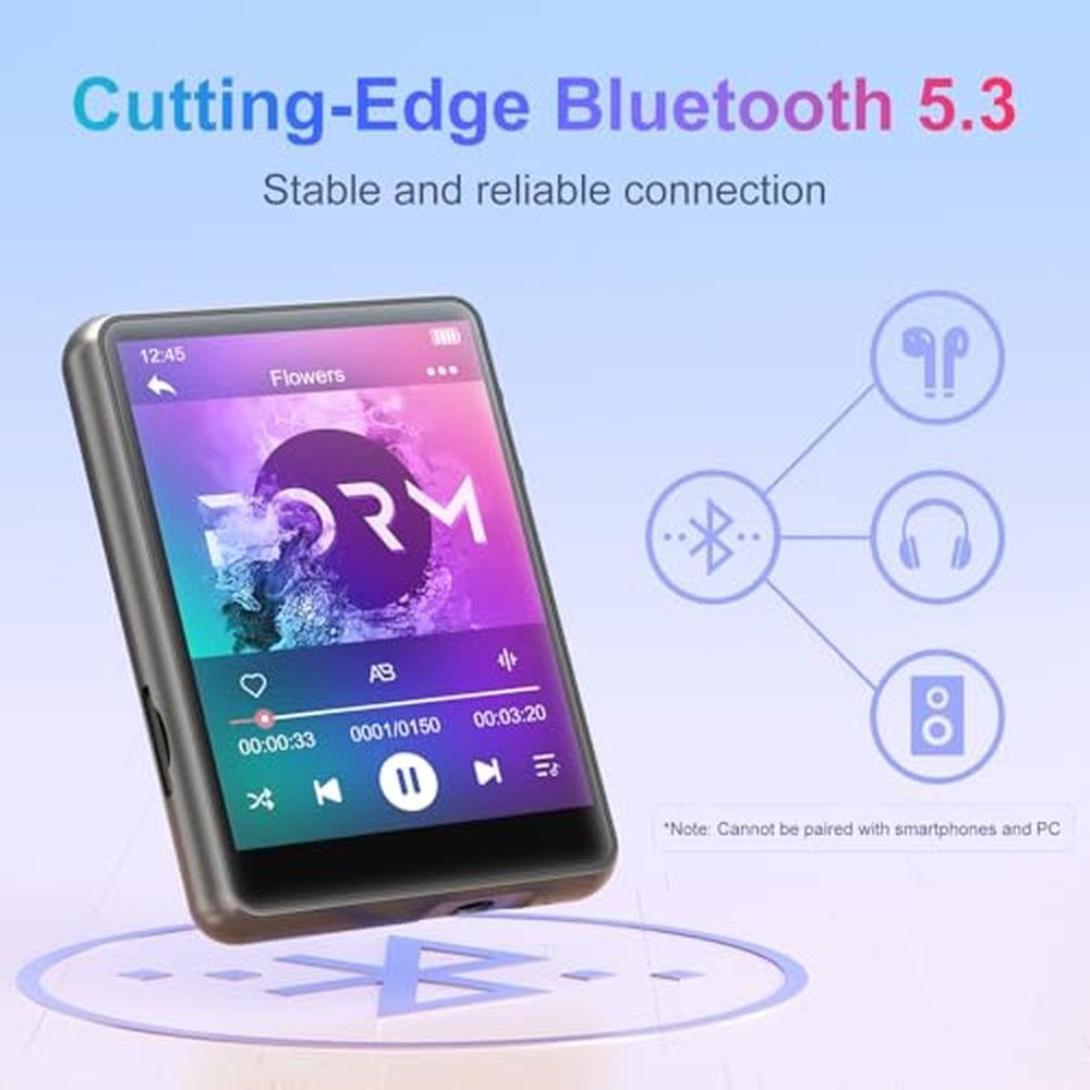 MP3 Player Mechen | Mechen 64GB Bluetooth 5.3 with 2.4 Full Touch Screen | Portable Digital Music Player with HiFi Lossless Sound