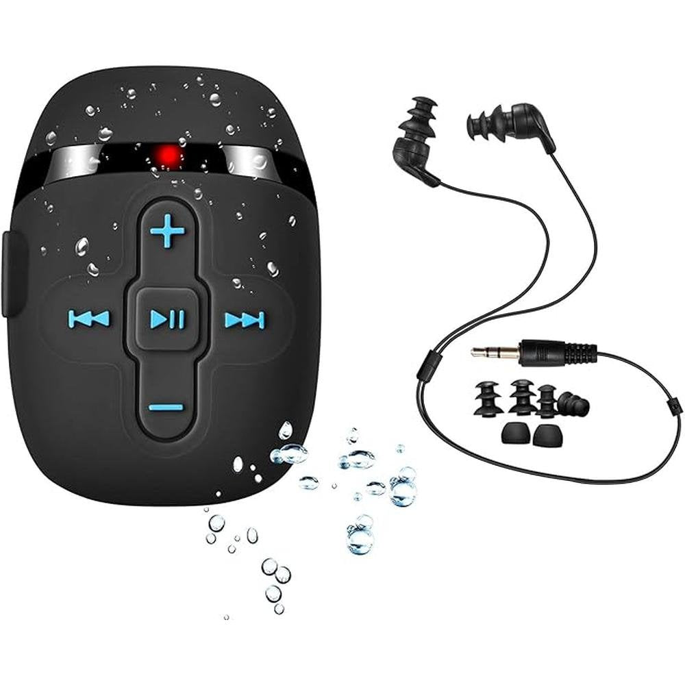 Waterproof MP3 Player for Swimming and Running, Underwater Headphones with Short Cord, Shuffle Feature