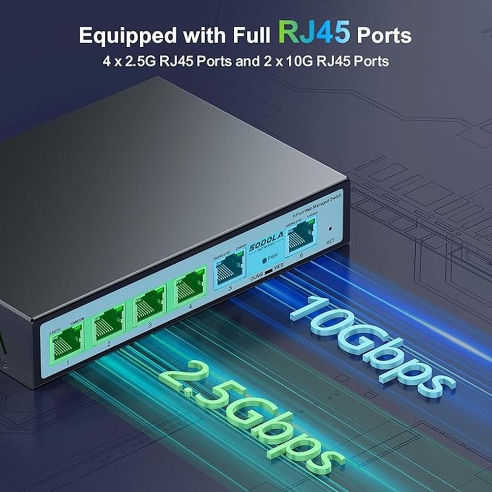 2.5Gb Easy Web Managed Switch, 2x10GBase-T Ports and 4x2.5GBase-T Ports, Full RJ45 Managed Ethernet Switch with Link Aggregation,VLAN,IGMP, 2.5G 10G Network Home-lab Switch
