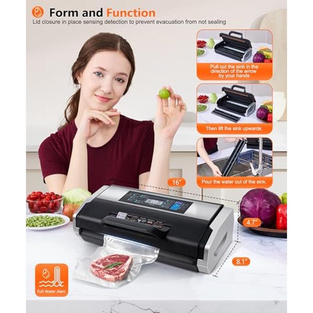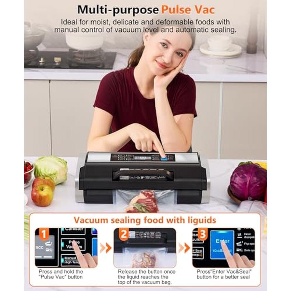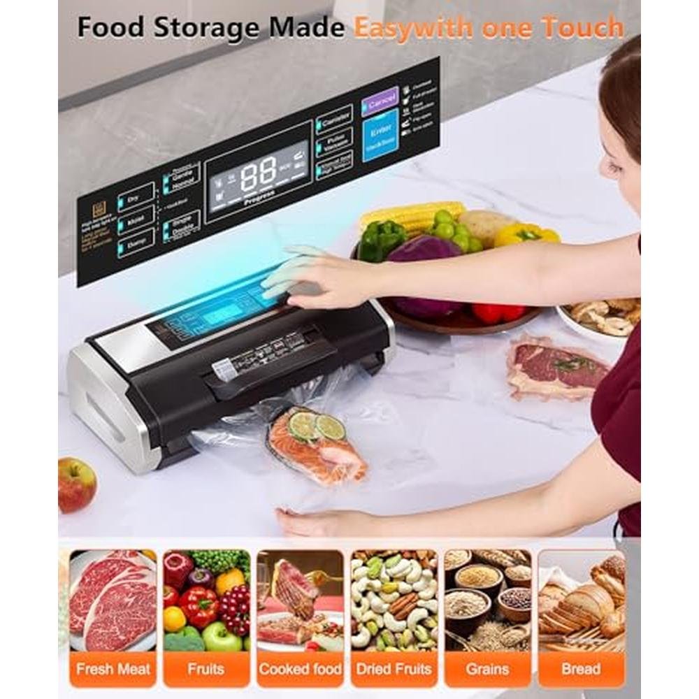 - Experience advanced food preservation with our 95KPa Vacuum Sealer, featuring a 10-in-1 system and double heat seal technology for secure and airtight seals
