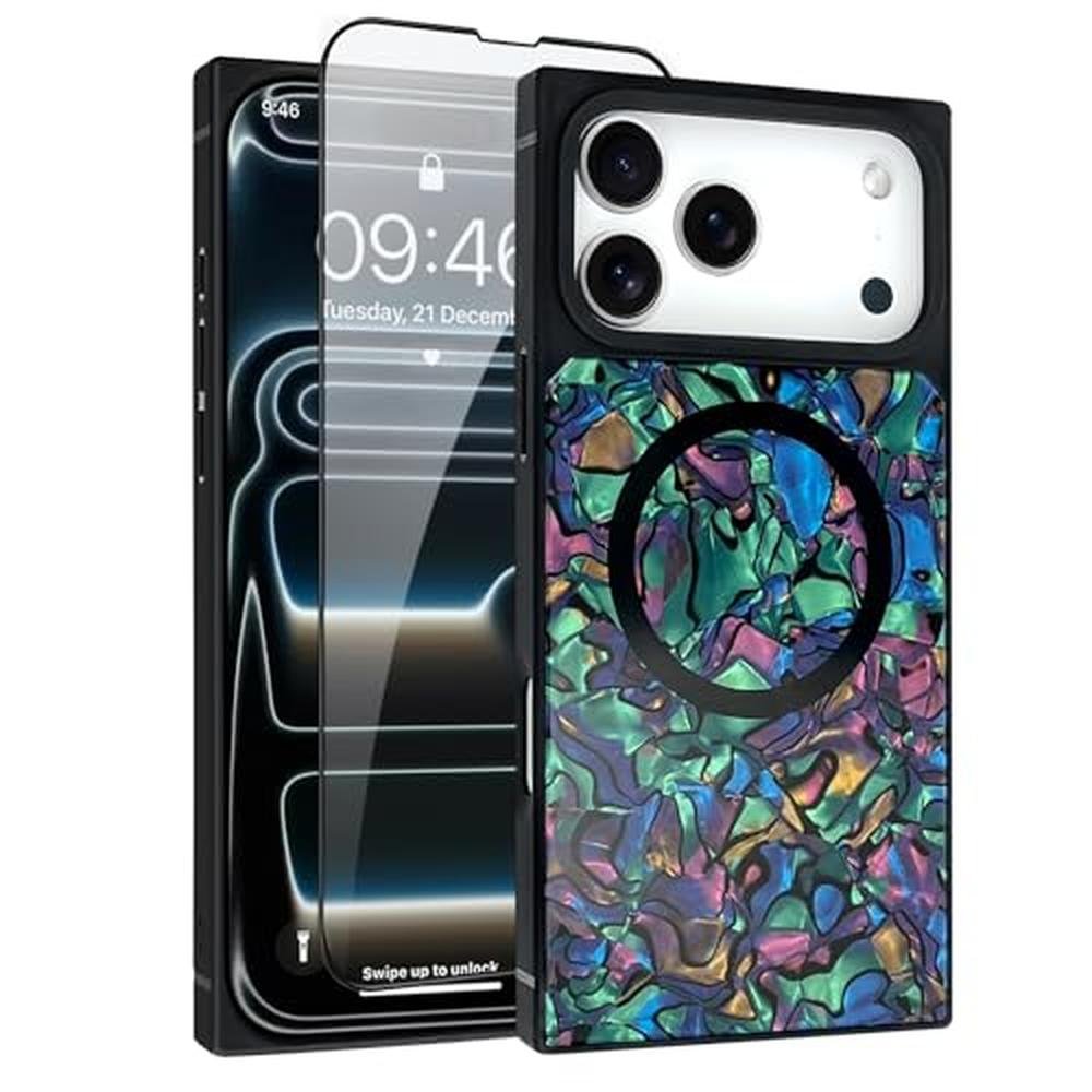 Indulge in the epitome of luxury phone protection with the AIGOMARA Magnetic Rectangle for iPhone 17 Pro Max Case, meticulously designed to provide a seamless Magsafe compatible experience. This exquisite case boasts a glossy glitter finish in a stunning opalescent pearl design, perfect for women and girls seeking to add a touch of sophistication to their mobile device. The AIGOMARA magnetic case is not only stylish but also offers superior protection, including a screen protector, to safeguard your iPhone against scratches and damage. Crafted with premium-grade materials, this case is designed to last, and its magnetic functionality ensures effortless attachment and detachment. Whether you're looking for a fashionable phone accessory or a reliable protective case, the AIGOMARA Magnetic Rectangle case is the ultimate choice.
