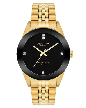 Armitron Men's Geinuine Diamond Dial Analog Gold-Tone Stainless Steel Bracelet Watch, 20/5569BKGP